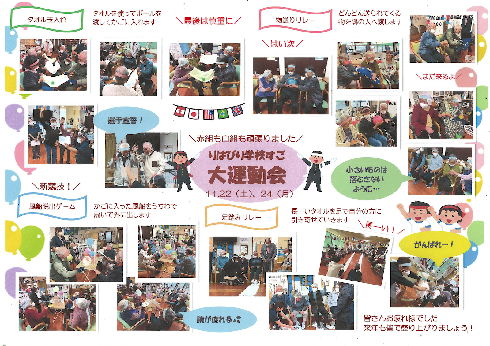 りはびり学校で、利用者様が日々楽しく元気にお過ごしいただいている様子の一部を、こちらでご紹介しています。